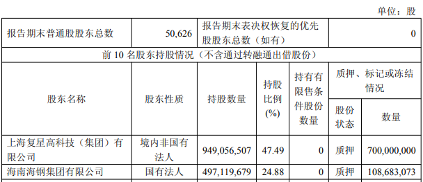 据此计算,复星高科及海南海钢集团有限公司累计质押海南矿业股份数量占海南矿业总股本比例的32.46%。