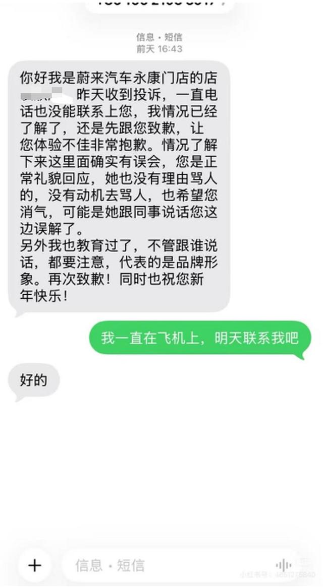 26日下午,新黄河记者致电蔚来官方400客服。客服及区域专员均表示目前系统内“未接到相关情况的反馈”。客服解释称,部分投诉可能由门店直接对接处理,相关信息不一定会在官方系统同步。但客服同时明确表态,如果辱骂客户行为属实,这属于“是非常严重的原则性问题”,公司肯定会反馈相关负责人并进行相应处理。