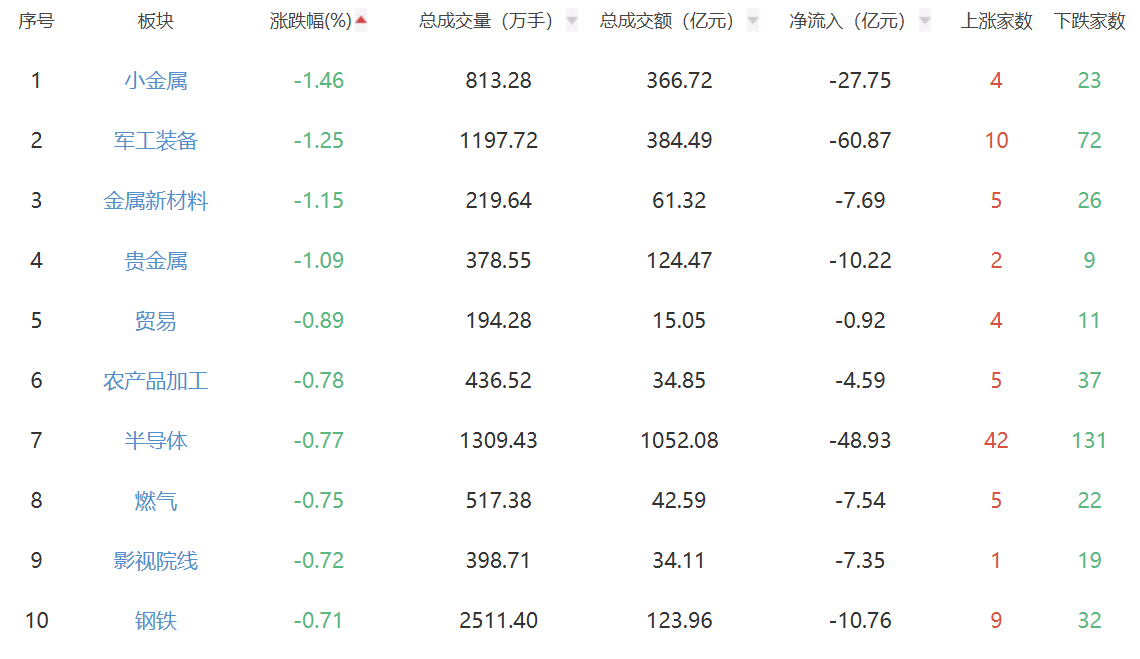 板块方面,电池、光伏设备、能源金属等板块涨幅居前,小金属、军工装备、金属新材料等板块跌幅居前。