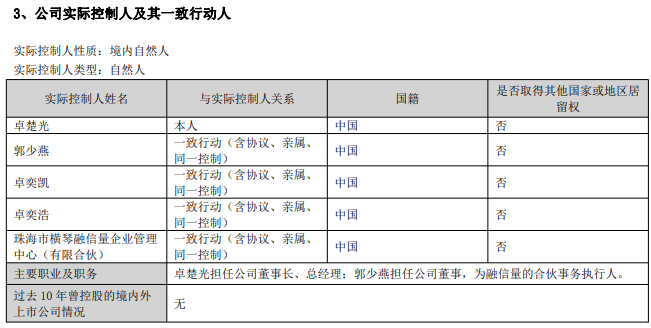 据久量股份此前公告,卓楚光与郭少燕为夫妻关系,卓楚光系公司原实控人,郭少燕系其一致行动人。