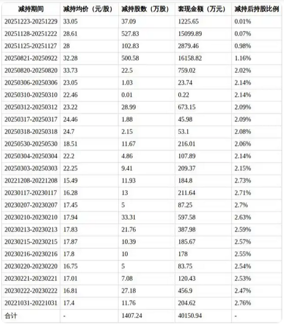 据新浪财经,数据显示,飞驰投资最初持股1412.25万股,占总股本的2.78%。飞驰投资从2022年10月31日起,第一次减持飞荣达股份,迄今为止,累计减持公司股票1407.24万股,累计套现约4.02亿元。