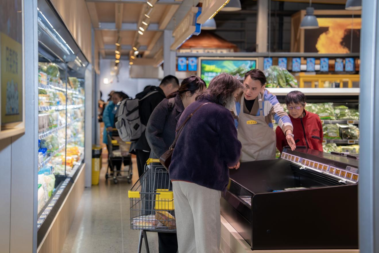 店内,“真值、真鲜、真好”三大品质标杆系列格外吸引消费者关注。作为优中选优的商品,“真鲜”系列关注24小时内的新鲜感,如当日加工的蔬果、屠宰分割的猪肉,均是当日或次日凌晨配送到店;“真好”系列精选清洁标签、健康添加、纯天然、有机等概念的高品质产品;“真值”系列则给到顾客意想不到的好价格。此外,商品上标注明显的ABCDE配料干净等级标识也帮助顾客更简单决策。