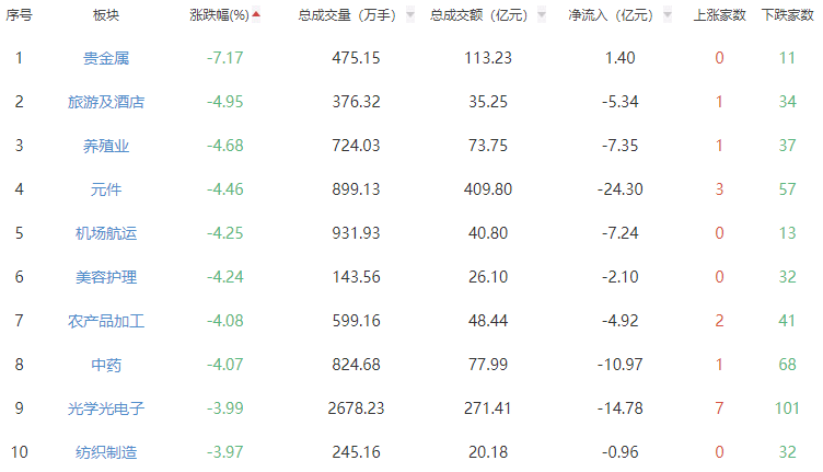 板块方面,煤炭开采加工、油气开采及服务、光伏设备上涨,贵金属、旅游及酒店、养殖业等跌幅居前。