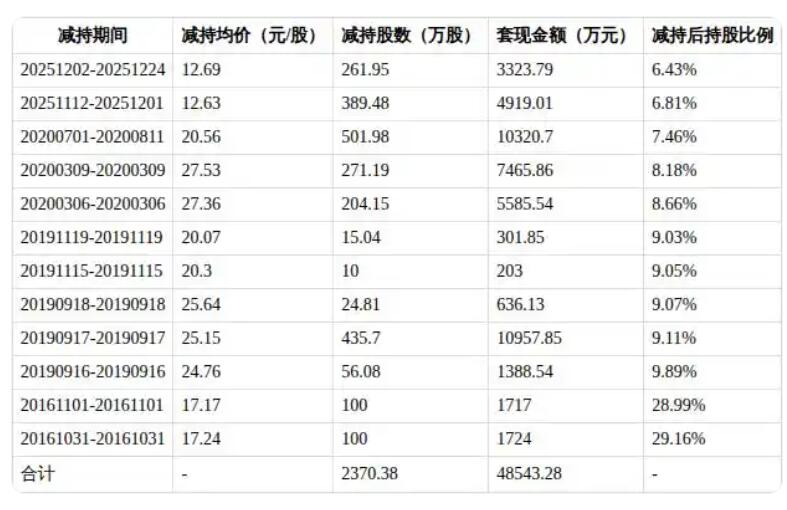 据新浪财经,孟庆南从2016年10月31日起,第一次减持武汉凡谷股份,迄今为止,累计减持公司股票2370.38万股,累计套现约4.85亿元。