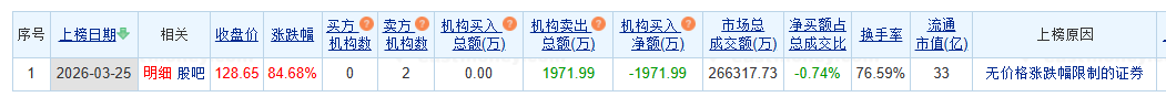 龙虎榜数据显示,卖出宏明电子金额最大的前5名中,2家为机构专用席位。经统计,机构席位今日卖出宏明电子净额为1971.99万元。