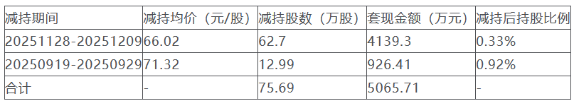 东莞凯创最初持股111.12万股,占总股本的1.04%。东莞凯创从2025年9月19日起,第一次减持凯格精机股份,迄今为止,累计减持公司股票75.69万股,累计套现约5065.71万元。