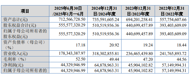 2022年至2024年,普昂医疗营业收入分别为24,176.59万元、23,646.54万元、31,830.29万元,净利润/归属于母公司股东的净利润分别为5,715.00万元、4,590.41万元、6,487.90万元,扣除非经常性损益后归属于母公司股东的净利润分别为5,159.00万元、4,212.45万元、6,693.84万元。