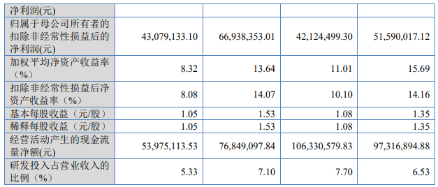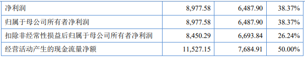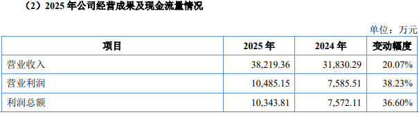 2025年,公司实现营业收入38,219.36万元,较2024年增长20.07%;实现归属于母公司所有者净利润8,977.58万元,较上年增长38.37%;实现扣除非经常性损益后归属于母公司所有者净利润8,450.29万元,较上年增长26.24%;经营活动产生的现金流量净额为11,527.15万元,同比增长50.00%。