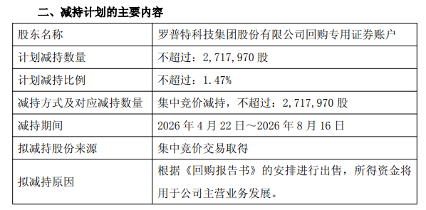 罗普特3月27日收报14.86元,本次出售已回购股份若完成出售,预计所得资金不超过4038.90万元。