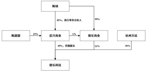 截至公告披露日,陈铸为星月商业、德乐科技的实际控制人,星月商业为德乐科技的控股股东。