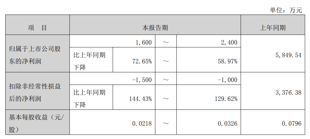 红宝丽此前披露的业绩预告显示,预计2025年实现归属于上市公司股东的净利润为1600万元至2400万元,同比下降58.97%至72.65%;预计实现扣除非经常性损益后的净利润为-1500万元至-1000万元,同比下降129.62%至144.43%,由盈转亏。