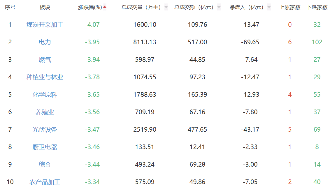 收评:三大指数下跌沪指跌1% 煤炭板块走弱
