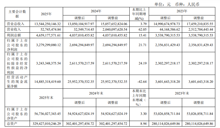 国投资本今日发布2025年年度报告。2025年公司实现营业总收入135.44亿元,同比增长3.79%;归属于上市公司股东的净利润32.79亿元,同比增长21.71%;归属于上市公司股东的扣除非经常性损益的净利润32.43亿元,同比增长24.19%