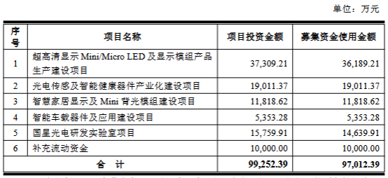 2025年12月5日,国星光电披露《2025年度向特定对象发行A股股票预案(修订稿)》。本次发行预计募集资金总额不超过97,012.39万元(含本数),扣除发行费用后将全部用于超高清显示Mini/Micro LED及显示模组产品生产建设项目、光电传感及智能健康器件产业化建设项目、智慧家居显示及Mini背光模组建设项目、智能车载器件及应用建设项目、国星光电研发实验室项目、补充流动资金。