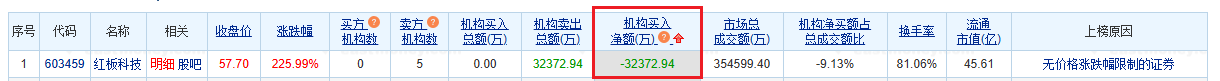 龙虎榜数据显示,今日,卖出红板科技金额最大的前五名中,5家为机构专用席位。经统计,机构席位今日卖出红板科技净额为32372.94万元。