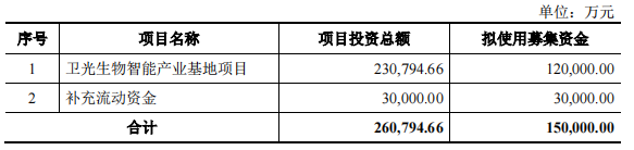 卫光生物4月4日披露向特定对象发行A股股票募集说明书(修订稿)(更新)称,公司本次向特定对象发行A股股票拟募集资金总额不超过150,000万元(含本数),扣除发行费用后,募集资金拟投资于以下项目:卫光生物智能产业基地项目、补充流动资金。