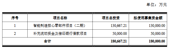 本次发行的募集资金总额不超过180,000.00万元(含180,000.00万元),扣除发行费用后,募集资金拟投资于智能制造核心零部件项目(二期)、补充流动资金及偿还银行借款项目。