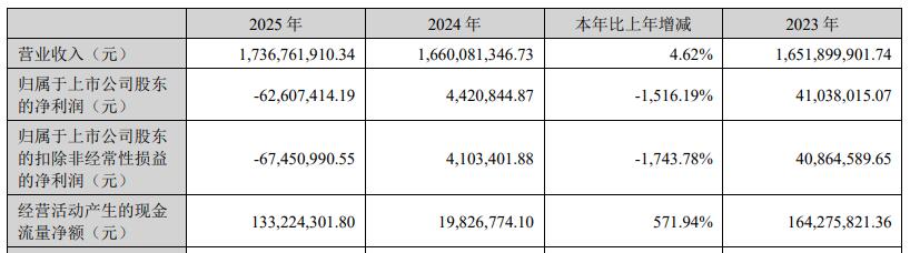中国经济网北京4月21日讯 惠云钛业(300891.SZ)昨晚发布2025年年度报告。2025年,惠云钛业实现营业收入17.37亿元,同比增长4.62%;归属于上市公司股东的净利润亏损6260.74万元,上年同期盈利442.08万元;归属于上市公司股东的扣除非经常性损益的净利润亏损6745.10万元,上年同期盈利410.34万元;经营活动产生的现金流量净额为1.33亿元,同比增长571.94%。
