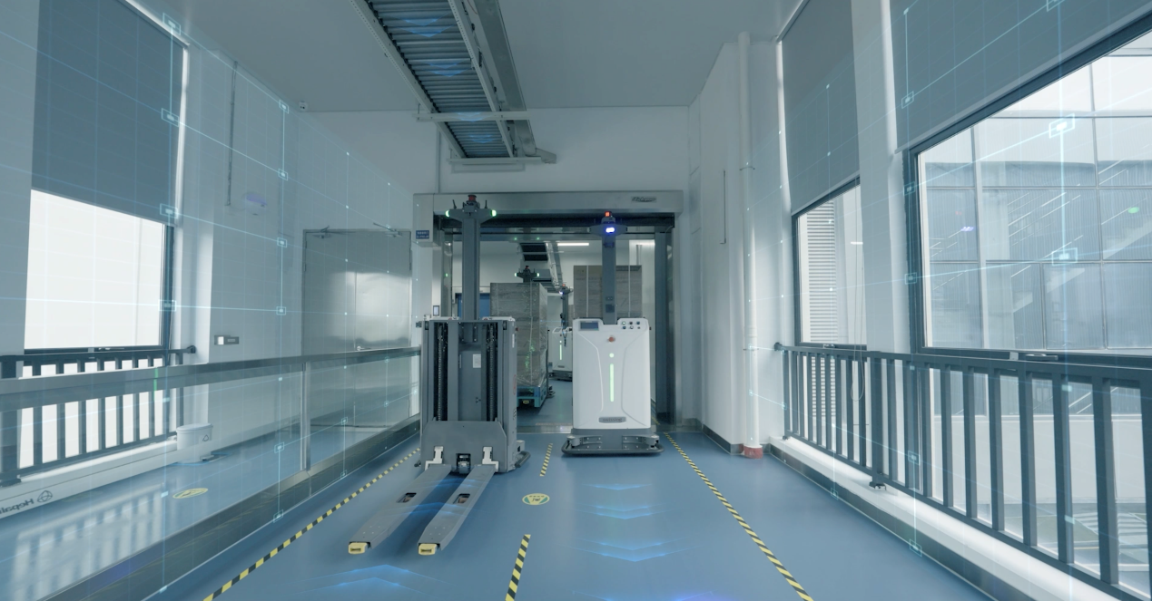 围绕依诺肝素钠这类高黏度制剂产品制造这一复杂场景,项目形成了多项关键创新:采用全下沉式5G多接入边缘计算架构,提升设备互联与数据控制的实时响应能力;构建5G自动导引车与汽化过氧化氢传递舱无缝融合的“零接触物流”体系,实现从仓储到A级隔离器的全流程无人化物料流转;搭载深度学习AI一体化脱巢与检测设备,显著提升检测效率,缺陷检出率100%;建立坪山—南山双厂区数字孪生协同模型,实现技术资源与生产配方快速迁移;攻克高黏度制剂产品生产中的泵体卡滞、高速检测玻璃破损等全球性行业难题;创新嵌入自动化立体仓库,有效提升空间利用率,破解土地资源紧缺瓶颈。