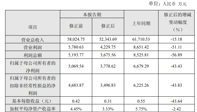中国经济网北京4月23日讯 金科环境(688466.SH)昨晚发布2025年度业绩快报更正公告。修正后,公司报告期内营业总收入为5.23亿元,同比下滑15.18%;归属于上市公司股东的净利润为3778.62万元,同比下滑43.43%;归属于上市公司股东的扣除非经常性损益的净利润为4683.87万元,同比下滑43.83%。