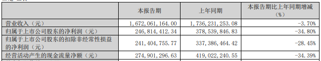 乐普医疗昨晚披露的2026年第一季度报告显示,公司去年实现营业收入16.72亿元,同比下降3.70%;归属于上市公司股东的净利润2.47亿元,同比下降34.80%;归属于上市公司股东的扣除非经常性损益的净利润2.41亿元,同比下降28.45%;经营活动产生的现金流量净额2.75亿元,同比下降34.39%。