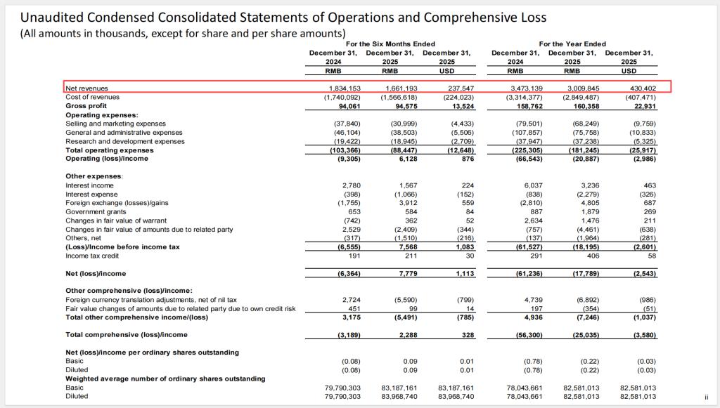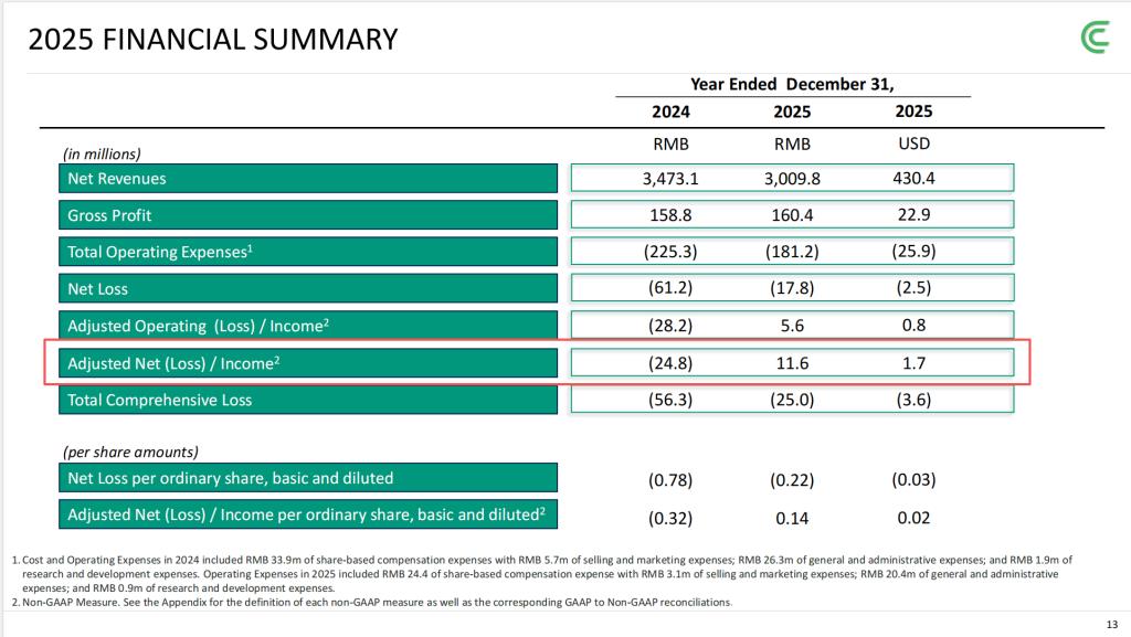 2025年,车车科技(NASDAQ:CCG)交出了上市以来第一份“盈利”年报。