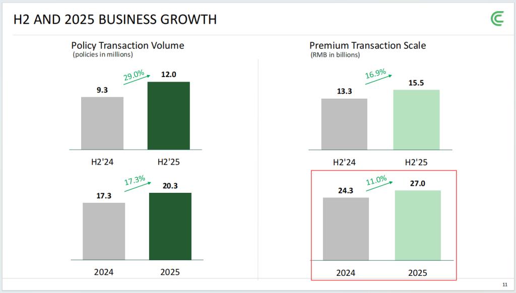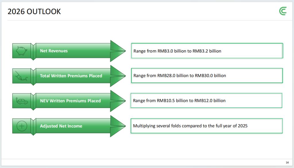 对于2026年,车车科技给出了总保费280亿至300亿元的目标,对应增速4%至11%。