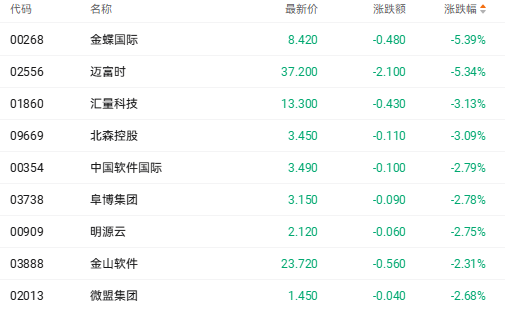 受此消息影响,今日港股软件股多数走低,其中金蝶国际和迈富时跌幅居前。