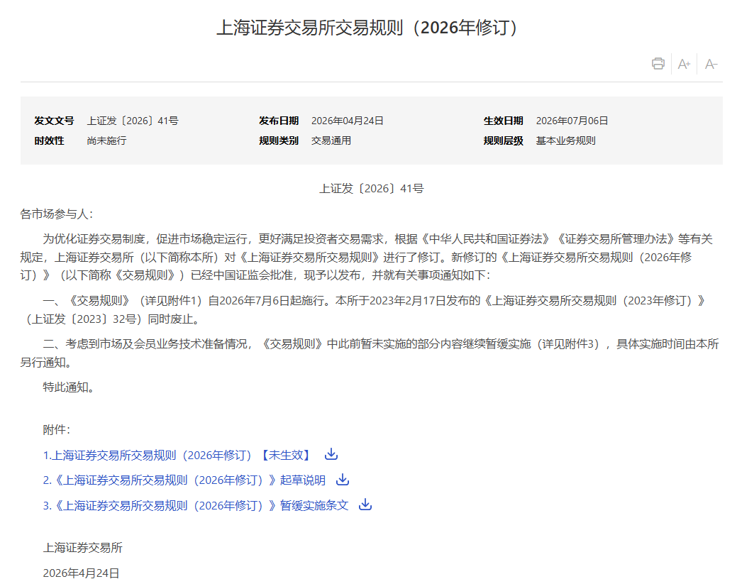 上交所修订发布《上海证券交易所交易规则》,内容主要包括: