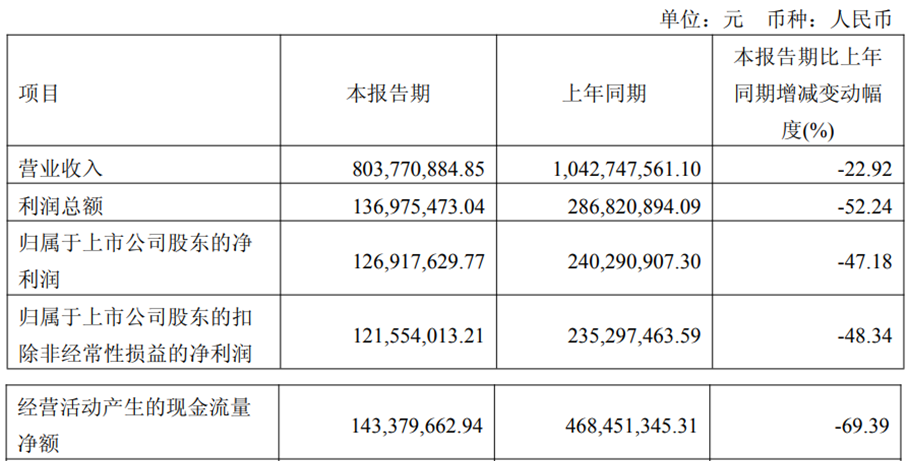 2026年第一季度,天有为实现营业收入8.04亿元,同比下降22.92%;归属于上市公司股东的净利润1.27亿元,同比下降47.18%;归属于上市公司股东的扣除非经常性损益的净利润1.22亿元,同比下降48.34%;经营活动产生的现金流量净额为1.43亿元,上年同期为4.68亿元。