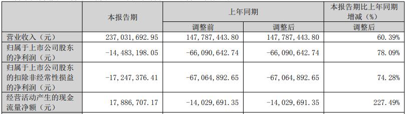 2026年一季度,金银河实现营业收入2.37亿元,同比增长60.39%;归母净利润亏损1448.32万元,上年同期亏损6609.06万元;扣非净利润亏损1724.74万元,上年同期亏损6706.49万元;经营活动产生的现金流量净额为1788.67万元,上年同期为-1402.97万元。