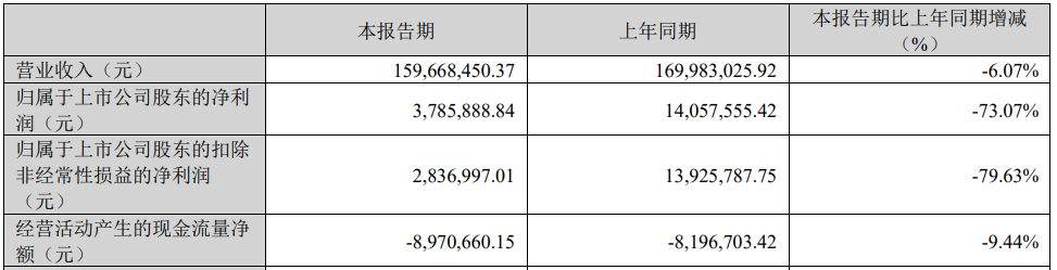 2026年一季度,天溯计量实现营业收入15,966.85万元,同比下降6.07%;实现归属于上市公司股东的净利润378.59万元,同比下降73.07%;实现扣除非经常性损益后的净利润283.70万元,同比下降79.63%;经营活动产生的现金流量净额为-897.07万元。