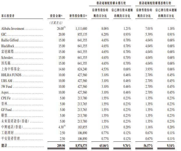 曦智科技的基石投资者为Alibaba Investment、GIC、Baillie Gifford、BlackRock、富达国际、Schroders、淡马锡、上海中移基金、HHLRA FUNDS、UBS AM、3W Fund、Aspex、CPE Fir、景林、广发基金、联想、未来资产证券(香港)、中兴通讯(香港)、工银理财、平安资产管理。