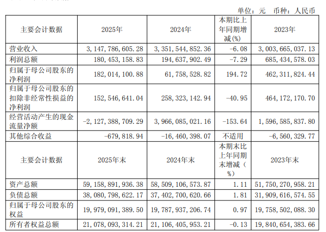 中国经济网北京4月28日讯 华创云信(600155.SH)昨晚发布2025年度报告。公司报告期内营业总收入为31.48亿元,同比下滑6.08%;归属于上市公司股东的净利润为1.82亿元,同比增长194.72%;归属于上市公司股东的扣除非经常性损益的净利润为1.53亿元,同比下滑40.95%。