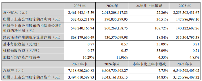 盛达资源昨晚发布2025年度报告。公司报告期内营业总收入为24.61亿元,同比增长22.26%;归属于上市公司股东的净利润为5.32亿元,同比增长36.51%;归属于上市公司股东的扣除非经常性损益的净利润为5.43亿元,同比增长108.72%;经营活动产生的现金流量净额为8.68亿元。