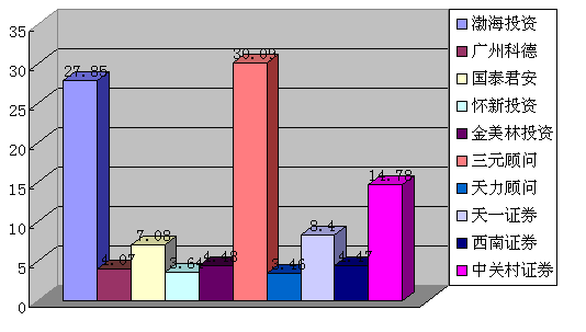 Ø 其他券商、机构的排名次序,收益率状况请看下图: