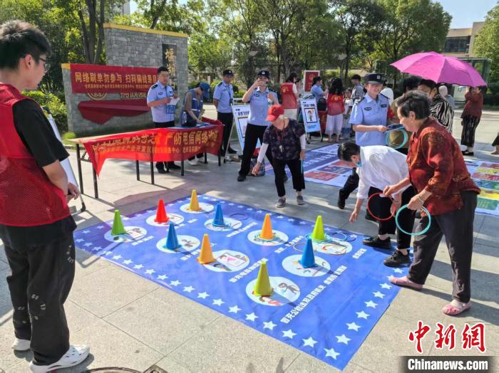 合肥市公安局高新分局通过互动体验和趣味游戏的方式邀请市民参加反诈活动。合肥高新公安 供图