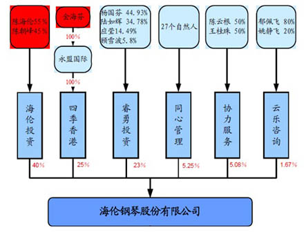| 同心管理,全称“宁波大榭开发区同心企业管理服务有限公司”,现持有海伦钢琴5.25%的股份,该公司成立于2008年4月25日。实际控制人为海伦钢琴27位高管。 |