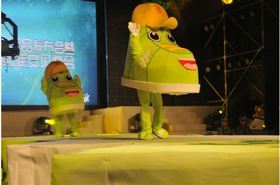 一场热辣的开场舞之后,一对BAGE(八哥)板鞋跑上场与观众见面。对,你没有看错,那真的是一对BAGE(八哥)的板鞋,这是BAGE(八哥)的吉祥物——板仔。它们可是首次在这么盛大的场合和观众见面哦。看它蹦蹦跳跳,手舞足蹈的,真是可爱又滑稽,看来它可一点都不怕生呢。