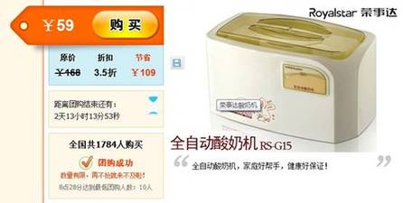 酸奶是很多 MM的最爱。酸奶所富含的多种乳糖酵素能够保护神经系统,提供能量来源,并且有利于人体钙质的吸收。炎炎夏日,自己动手做出纯正的酸奶,慢慢享用,是多么幸福的事情!近日,拉手网持续给力,推出仅需 59元便可买到原价 168元的荣事达 RS— G15全自动酸奶机一台的活动!而且全国包邮(除港澳台新藏等地区外)。