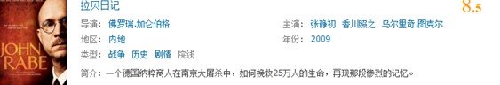 亲亲:他被迫走进这段历史,最后又被迫离开。拉贝被真实还原:比如他本人并没有成为一个救世主的主观意愿,比如他对于纳粹的幻想。当拉贝在中国人民的欢呼声中离开、当他再一次将心爱的妻子拥入怀中,那种满足与回归,你感受到了吗?历史有很多...