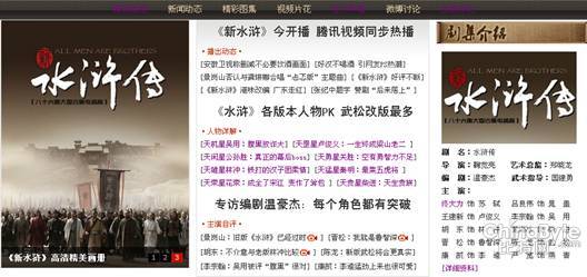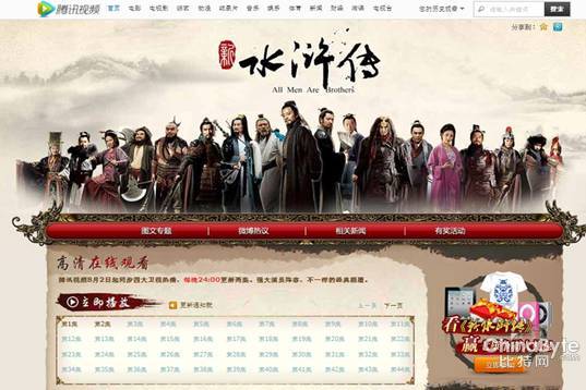 2011年8月3腾讯视频再次出击,联合安徽卫生、东方卫视在网络首播热门大剧新《水浒》。集热门大剧新《还珠格格》网络首播之后,如今再次掀起一股古装热潮。